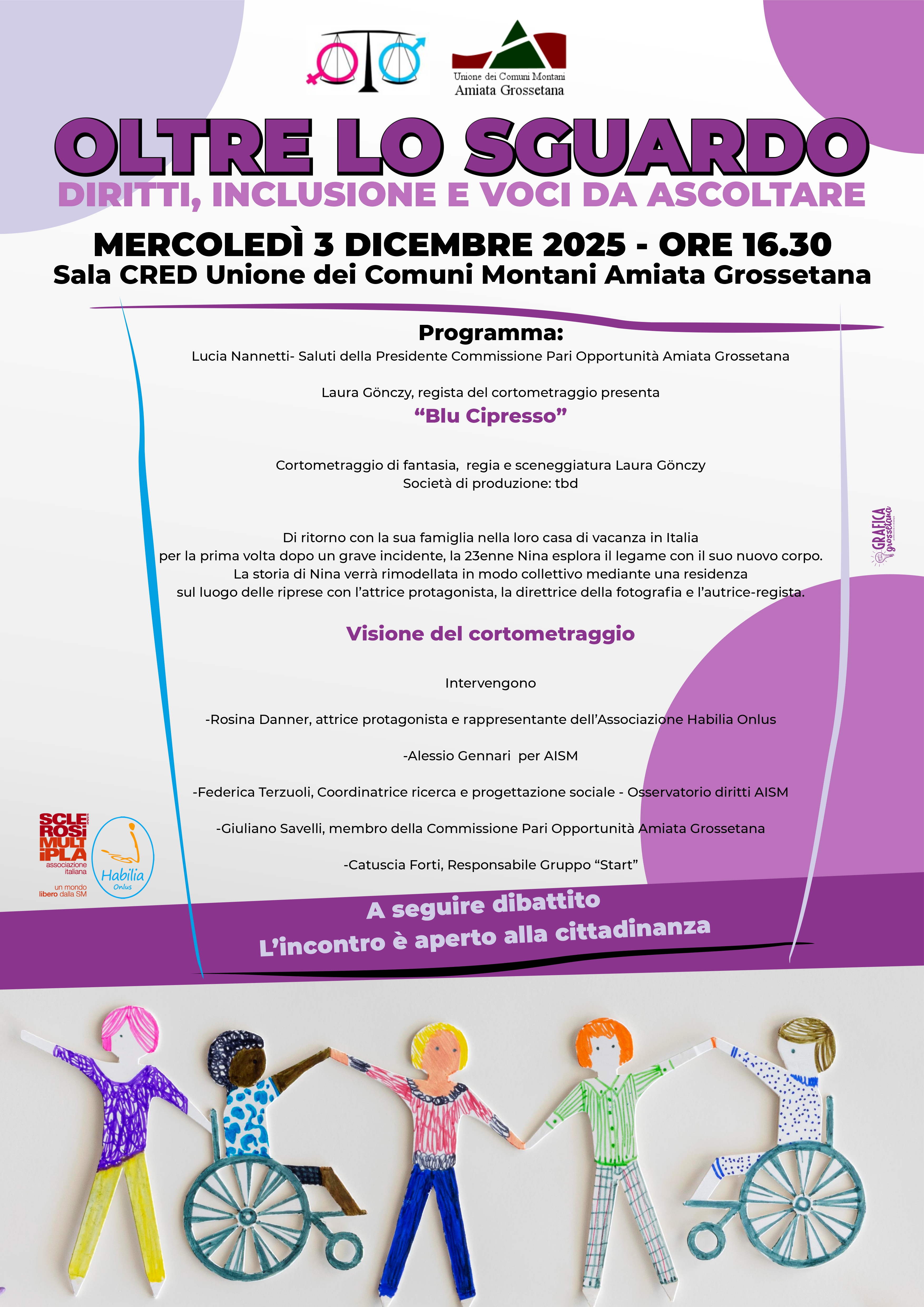 Oltre lo sguardo, diritti, inclusione e voci da ascoltare Mercoledì 3 dicembre 2025 – ore 16.30,Sala CRED – Unione dei Comuni Montani Amiata Grossetana
